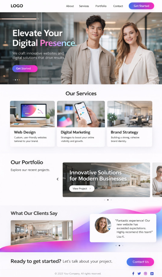 Zu Beginn arbeitet bluetronix in der Regel mit einem Layout als Ausgangsbasis. Du erhältst Zugang und kannst Dir verschiedene Layouts im Website-Builder ansehen, um einen Favoriten auszuwählen. Dieses Layout passt bluetronix anschließend an Dein Branding an, zum Beispiel bei Farben, Schriftarten und weiteren gestalterischen Details. So entsteht Schritt für Schritt eine Webseite, die optisch zu Deinem Unternehmen passt und gleichzeitig auf einer bewährten Grundlage aufbaut.