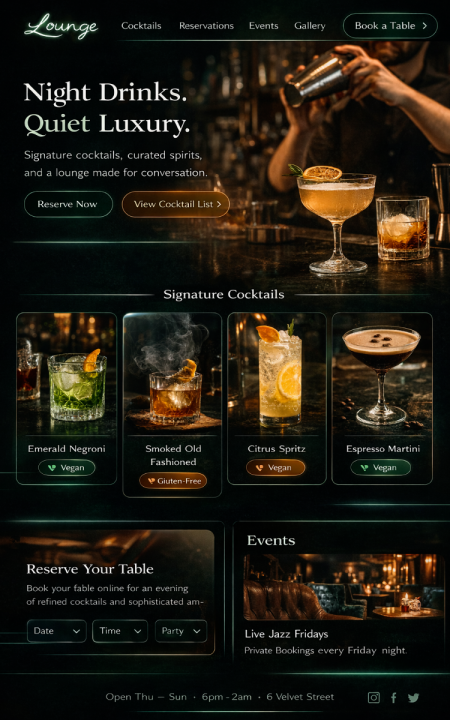 Stell dein Restaurant hochwertig vor: Küche, Team, Öffnungszeiten, Anfahrt, Galerie, Events und Aktionen. Gäste finden alles sofort und kommen schneller zur Reservierung oder Bestellung.Optional mit News-Bereich für neue Gerichte, Aktionen und Event-Abende. Alles pflegbar ohne Technik-Stress und ohne Agentur-Pingpong.